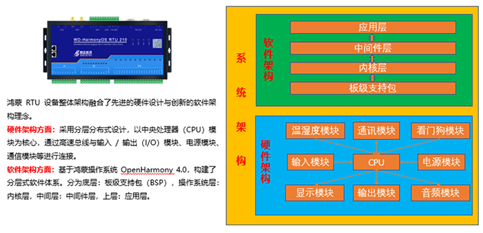 鸿蒙RTU是实现⽆⼈值守智能控制、M2M等物联⽹应⽤的重要组成部分,具有⾼带宽的数据传送通道,可以将⽆⼈站点更多的测 量数据、诊断数据、边缘计算数据等通过WIFI、4/5G讯将数据传回控制中⼼,并接受控制中⼼的远程控制指令,实现远程⽆⼈值守站点测控。