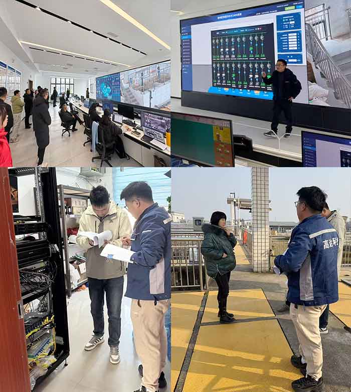 (高达科技“千村污水站”与相关人员在验收现场逐项仔细核对和检查)