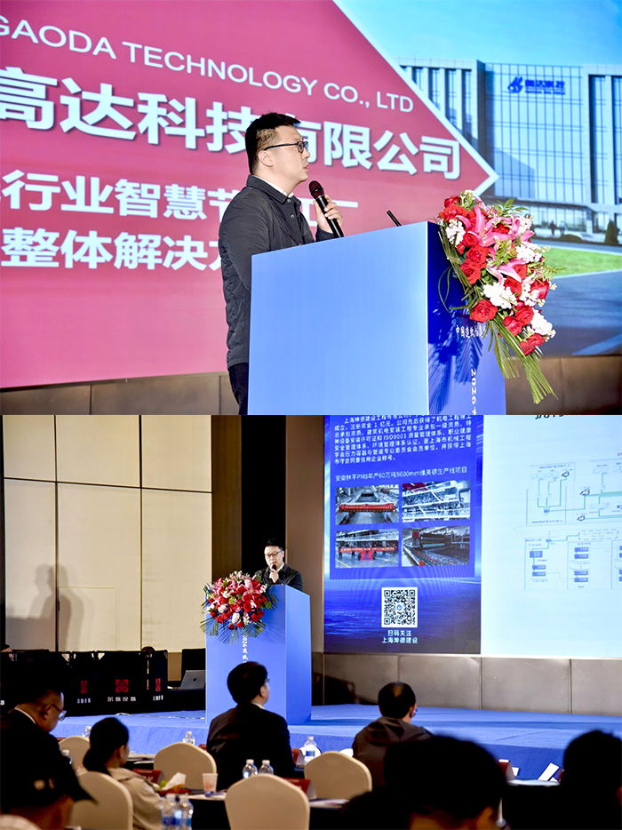 (高达公司技术营销专家谈国志给与会代表分享高达科技《造纸行业智慧节能工厂整体解决方案》的现场)