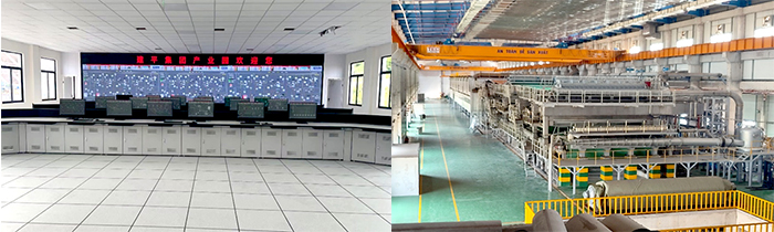 (左为:分布集散控制系统(DCS)中控站;右为:纸机传动控制系统生产现场场景)