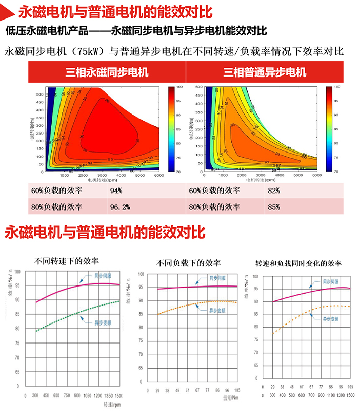 (永磁电机与普通电机能效对比图)