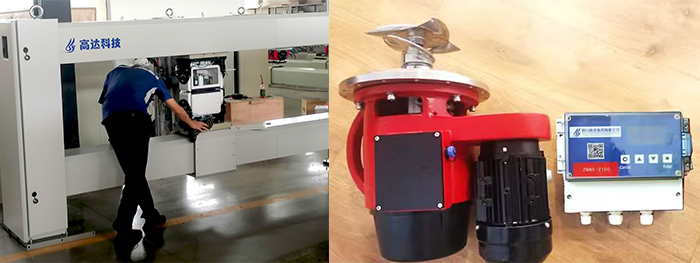 (左为:正在调试即将出口到俄罗斯的QCS产品;右为:高达ZNNX-2100 智能内旋式纸浆浓度传感器)